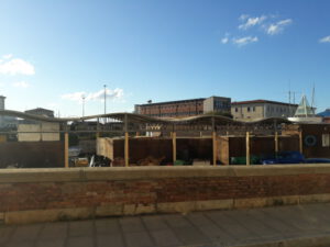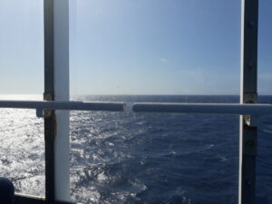 Blick aus dem Fenster unserer Kabine. Wir können Palermo schon sehen.
