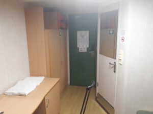 Endlich auf der Fähre (23:32 Uhr) – Die Kabine ist ziemlich schäbig und siffig. Haben erst mal alle Flächen desinfiziert und dabei gereinigt. WIDERLICH!!! Hier will man gar nichts anfassen…