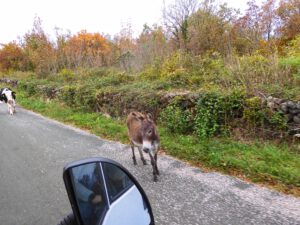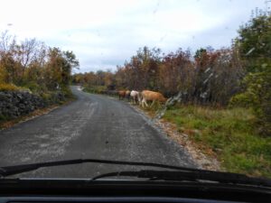 Leider wurden wir eines Besseren belehrt. Das Navi ärgerte uns mal wieder, so dass wir kreuz und quer durch die Gegend fuhren, über kleine Feldwege und durch Wohngebiete. Auf einer kleinen, engen, kurvenreichen Straße blinkte uns ein Auto auf. Wir wunderten uns kurz, aber fuhren weiter. Kurz darauf blinkte ein entgegenkommendes Auto erneut auf. Also fuhren wir rechts ran und konntrollierten alles. Wer weiß, was da schon wieder los ist. Aber da wir nichts entdeckten, fuhren wir weiter. Und in der nächsten Kurve stellten wir fest, warum wir so oft gewarnt wurden. Eine paar Kühe spazierten gemütlich über die Straße und begrüßten uns mit einem freundlichen „Muuuh!“ – daher also das wilde Geblinke. Die falsche Route führte uns durch ein Wohngebiet und entlang des Meeres, an einer touristisch noch recht unbefleckten, wunderschönen Region der Insel.