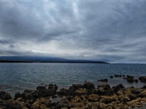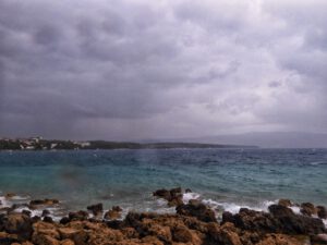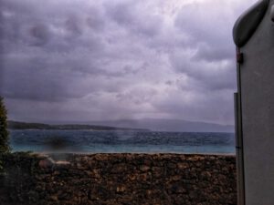Nachdem wir den Müll zumindest grob entfernt haben, gings im Regen weiter zum Platz Valamar. Dort angekommen musste ich feststellen, wie rutschig die Böden in der Rezeption sind, wenn sie feucht sind. Beim Verlassen der Rezeption bin ich dann auch ausgerutscht. Irgendwie sinnbildlich für den zweiten Aufenthalt des einst so schönen Platzes.
