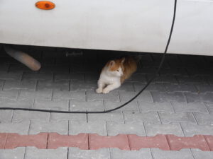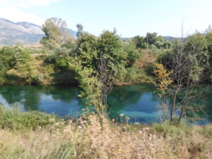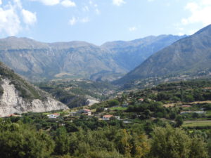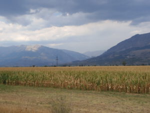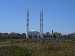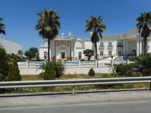 Kurz danach wollte uns das Navi an einer Straße abbiegen lassen, an der dies nicht möglich war. Also mussten wir den Umweg in eine Stadt nehmen: Chaos pur, enge und volle Straßen. Bettelnde Kinder, die an die Scheiben klopften, Marktfrauen, die Hühner und Hasen in Käfigen hielten und zum Verkauf anboten. Ziegen- und Kuhhirten, die ihr Vieh durch die Gassen trieben und Pferdegespanne die die Straßen blockierten. Das alles war zugleich beeindruckend und aufregend. Ich war so durch den Wind und erschlagen von allem, dass ich nahezu keine Bilder gemacht habe. Als wir die Stadt verließen, lasen wir auf dem Ortschild, dass wir gerade Tirana, die Hauptstadt Albaniens verlassen haben. Kurz danach durchquerten wir noch Durrës, eine weitere Großstadt. Chaos inklusive!