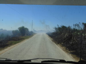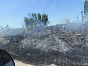 Wir sind recht planlos durchs Land gefahren und haben dabei nur einzelne Eckpunkte abgesteckt, die wir anvisierten. Unter anderem eine Stelle am Meer, die wir durch eine Stichstraße erreichten. Eine beindruckende Region, die zwischen Moderne und Verfall variierte. Plötzlich standen wir mitten in einem „Waldbrand“. Waldbrand in Anführungszeichen, weil es eher ein Buschbrand war, aber dennoch war es merkwürdig, mitten durch zu fahren.