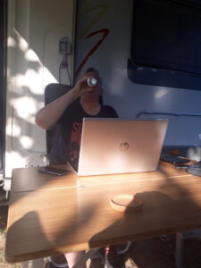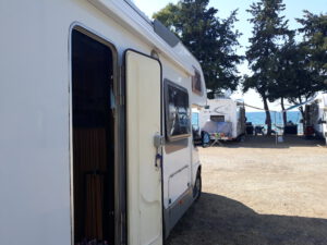 Montag 01. August 2022 – Während wir so gemütlich auf dem Platz am See saßen und den Tag genossen haben, hörten wir plötzlich einen Schlag und stellten fest, dass unser Fenster mal wieder „abgekracht“ ist. Die Halterungen sind schon lange defekt, haben nun aber scheinbar völlig den Geist aufgegeben. Da wir dann den Nachmittag mit Reparaturen verbrachten und in einem Rutsch noch die Badtür (die immer wieder klemmt) „repariert“ haben, ging so viel Zeit drauf, dass wir spontan einen Tag länger auf dem Platz blieben, um die Weiterfahrt planen und alles so erledigen zu können, wie wir es uns vorgestellt hatten.