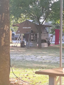 Und zum Abschluss des Tages beobachteten wir einen Schweizer, der mit Auto und winzig kleinem Anhänger ankam, an dem er dann ca. eine Stunde schraubte, klappte, zog, und rüttelte, bis gefühlt ein Einfamilienhaus dort stand. So einen Transformer-Wohnanhänger haben wir noch nie gesehen. Aber damit waren wir scheinbar nicht die Einzigen, denn eine Hand voll Camper bestaunten diesen Aufbau und fotografierten den Fortschritt.