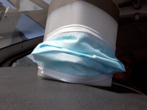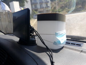 Mittwoch, 03. August 2022 – Als wir heute Morgen losfuhren, haben wir festgestellt, dass wir unsere Solarlampe nicht aufgeladen hatten. Da wir diese aber abends gerne nutzen, hat Juergen kurzerhand mit einer Maske eine Halterung gebaut, jetzt trägt unser Mädchen also auch Maske. Wir sind übrigens die einzigen hier, die wir in all den Tagen mit Maske gesehen haben. Wirklich! Weder in Ungarn, Kroatien, oder sonst wo. Nirgendwo hat auch nur einer eine Maske getragen. Eine Frau hatte eine Maske am Arm. Das wars!
