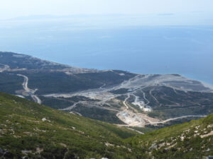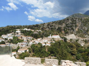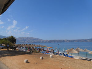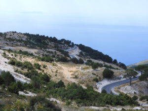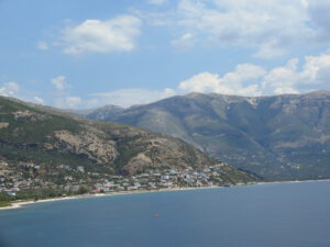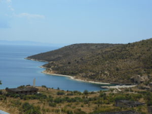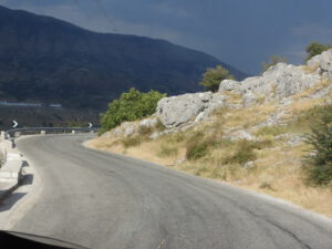 Dann gings los, quer durchs Land bis zur Küste unmittelbar bei Korfu. Wir konnten quasi nach Griechenland spucken. Aber der Weg dorthin war unglaublich. Stellenweise so eng und steil, dass ich keine Bilder machen konnte, weil ich panisch an meinen Nägeln kauen musste. Irgendwann hatten wir dann ein Baustellenfahrzeug vor uns und ich wurde ruhige, da ich dachte, der macht uns den Weg frei! Eine Stelle war beispielsweise so eng, dass eine Ampel den Verkehr regelte. Als wir dann grün hatten und die beiden Autos vor uns und wir durch den Engpass starteten, hingen plötzlich zwei junge Männer auf einem Roller fast in uns, da sie einfach über die rote Ampel in den Engpass gerast sind. In einem Bergdorf mussten sich einige Idioten noch an parkenden Autos vorbeidrängeln und fuhren sich dann zwischen diesen und uns fest, wurden sauer und wollten, dass wir uns da raus bewegen, damit sie weiterfahren können.