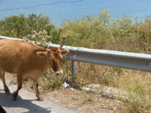 Mitten auf den Wegen spazierten Kühe, die aber schlau waren: Auf der linken Seite gehen und der Gefahr ins Auge sehen.