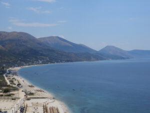 Übernachtet haben wir dann auf einem Kleinen Platz in Vlora, der alles bot, was man benötigt, aber ein wenig aufgeräumter hätte sein können. Die Plätze am Meer waren wunderschön, aber hinter unserem Platz flog schon recht viel Müll rum. Aber alleine der Wind war unbezahlbar. Nach all den heißen und schwitzigen Tagen, war es uns sogar so frisch draußen, dass wir frühzeitig rein sind.