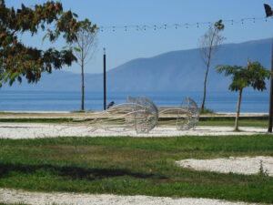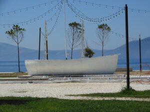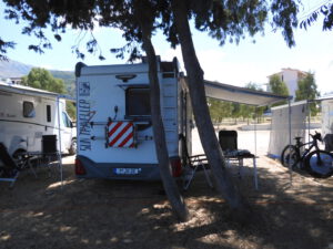 Gestern Morgen haben wir die Asphaltwüste und auch Kiki nach einer Nacht verlassen und sind zurück nach Vlora, zum Platz am Meer gefahren. Da wir dieses Mal deutlich früher dran waren, haben wir noch einen Platz in der ersten Reihe ergattern können. Während wir alles aufbauten kamen dann zwei junge Deutsche zu uns und fragten uns über den Platz aus. Wir plauderten eine Weile über unsere Reisen und stellten fest, dass der Verkehr und die Straßen uns alle nachhaltig prägten. Leider erzählten sie uns dann, dass ihr Kühler ausgefallen und der Motor daher am Kochen ist. Daher legten sie die Zwangspause auf dem Platz ein, den sie aber eigentlich gar nicht besuchen wollten. Auf unseren Rat hin haben sie dann ihre Route geändert. Durch die Berge mit ausgefallenem Kühler ist unmöglich. Da sie aber auch bis zum äußeren Rand Albaniens fahren wollten, haben wir ihnen die Schnellstraße empfohlen. Nachdem ihr Auto wieder fahrbereit war, haben sie die Weiterreise angetreten und wir haben unser mittägliches Frühstück mit Meeresrauschen im Ohr abgehalten.