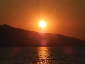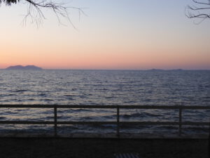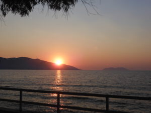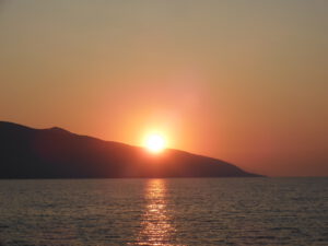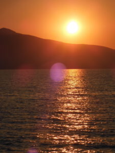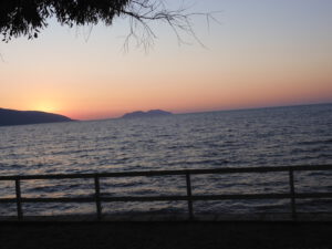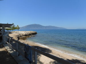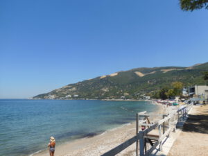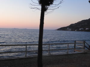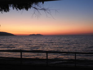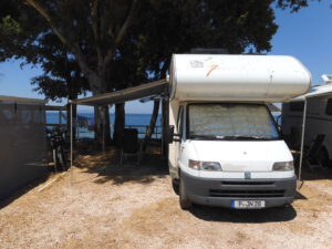 Viel mehr ist gestern auch nicht passiert. Mit 20 °C hatten wir die mit Abstand kühlste Nacht auf unserer Reise. Sonst lagen die Temperaturen nachts immer zwischen 28 und 30 °C. Und dennoch habe ich kaum geschlafen. Heute Morgen haben wir dann die Gardinenleisten wieder befestigt, die unseren Sprung nach einer enorm großen Bodenschwelle nicht so gut verkraftet hatten, ich genieße nun den Kaffee mit Blick aufs Meer, während Juergen noch im Womo werkelt, die schon länger mal „liegen geblieben“ sind.