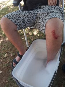 Nach dem mittäglichen „Frühstück“ habe ich dann mein „Aua, meine Wunde tut so weh, ich will aber nicht ins Krankenhaus, weine stattdessen lieber leise vor mich hin“-Fußbad gemacht. Auf Jürgens Rat und Wunsch hin spüle ich so täglich meine Wunde aus, damit Jürgen mir diese im Anschluss verarzten kann während ich leise vor mich hin wimmere. Ok, ganz so schlimm ist es nicht, aber fast! 😊