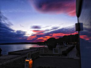 Na, da bietet dieser Platz so viel, aber Handtücher nicht. Das hätte ich jetzt mal wirklich gebrauchen können. Wasser ist also nach wie vor ein leidiges Thema für mich. Mittlerweile bin ich aber wieder trocken, so trocken wie mein Handtuch, das noch im Wohnmobil hing.