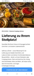 Während ich Kanister schleppte, entdeckte Juergen ein hiesiges Angebot: Ein Bringdienst, der Einkäufe liefert, inkl. Camping-Zubehör. Ob die auch Wasser liefert?