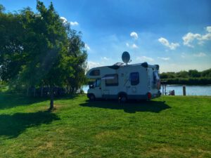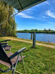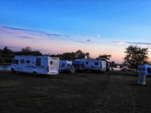 Eigentlich wollten wir nur zwei Nächte bleiben, aber haben nun so oft verlängert, dass wir voraussichtlich am 19. August weiterreisen werden. Zwischenzeitlich zogen wir aus der zweiten Reihe in die erste um, sodass wir nun direkt am Wasser stehen.