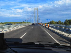 Als wir morgens losfahren wollten, waren wir komplett zugeparkt. Diese Abzocker nutzen jeden Millimeter, um noch ein Zelt aufzustellen. Die freundlichen Gäste parkten aber alle fix um, so dass wir zum Tor fahren konnten. Der Platzwart rastet total aus, beleidigte uns wiederholt rassistisch und rief den Besitzer, der erst freundlich wirkte, aber ebenso dann rassistische Äußerungen tätigte und uns wiederholt beleidigte. Wir müssten ganze sieben Tage bezahlen, bellte der Platzwart, der wie ein Terrier um den Betreiber und mich herum sprang. Der Betreiber sagte dann, min. 3,5 Tage seien zu zahlen und ließ uns dann kommentarlos stehen. Da wir uns am Vortag aber schon informiert hatten, wie wir die Polizei in Rumänien erreichen, erklärten wir, dass wir keinen Vertrag abgeschlossen haben und wir die Polizei rufen würden. Auf einmal waren dann drei Tage ok (also ein Tag mehr als wir tatsächlich dort waren). Vermutlich trug auch Jürgens clevere Platzierung vorm Tor dazu bei, die den gesamten Platz lahm legte. Eigentlich hätten wir tatsächlich die Polizei rufen müssen, da wir nur zwei Tage dort waren, aber für umgerechnet 28 Euro (übrigens der teuerste Platz der Tour) war uns die Zeit zu schade. Schließlich hatten wir erneut eine sehr lange Tour vor uns. Juergen wollte nämlich binnen zwei Tagen nach Ungarn zum Balaton fahren, wo wir bereits 2022 waren.