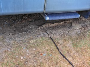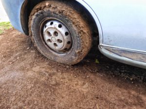 Den Platz hatten wir bereits morgens telefonisch reserviert. Man versprach uns einen Super-Platz, da wir sieben Tage bleiben wollten. Dort angekommen ließ man uns erst mal 20 Minuten am Tor stehen, dann lotste man uns auf eine Schlammpiste, eingeengt zwischen Zelten und dem Waschhaus. Der Boden war so schlammig, dass wir stecken blieben. Der Platzwart brüllte uns unentwegt an, war extrem aggressiv, als wir sagten, er solle sich beruhigen, wollte er uns vom Platz werfen, aber wir steckten ja im Schlamm fest. Da Juergen von der langen und anstrengenden Fahrt im Regen und teilweise im Dunkeln K.O. war, entschieden wir uns dazu, zwei Tage zu bleiben, um zu regenerieren, eine riesen Portion Nudelsalat für die Weiterfahrt vorzubereiten und den Boden trocknen zu lassen, um dann diesen Platz aus der Hölle namens Malul Marii hinter uns zu lassen.