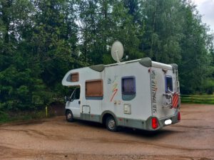 Weils dann doch sehr spät wurde, steuerten wir einen Parkplatz zur Übernachtung an. Der war immerhin wieder in Polen. Die Grenzübergänge zwischen Polen und CZ waren so fließend, dass man den Länderwechsel gar nicht bemerkte. Von Polen nach Deutschland war der Stau so unfassbar lang, dass wir das Ende gar nicht sehen konnten. Zum Glück stehen da ja keine Menschen wie Merz und ich stundenlang im Stau, das trifft ja nur die, die „komisch aussehen“ – Das sollte der Clownkanzler mal den wütenden Truckern ins Gesicht sagen!