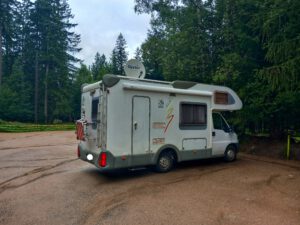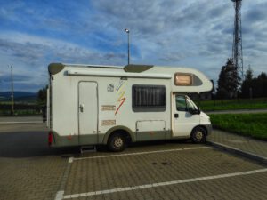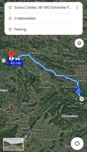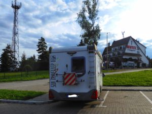 Wir standen auf jeden Fall auf einem Parkplatz, mitten im Riesengebirge. Juergen plante um 02:59 Uhr weiter, und dachte sich: „Jetzt stehen wir ermutlich ganz alleine hier, mitten im Gebirge! Außer uns nur Rübezahl.“