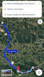 Nachdem wir in Döbern alle großen und kleinen Aufgaben verrichtet hatten, der Wischerwechsel vollzogen, das Teppischdrapieren erledigt, das Bierbesorgen abgehakt und der Augenaustausch (Augen = Lampen, aber mir ist kein Kompositum mit Lampe eingefallen, das eine Alliteration darstellt.🤷♂️) beendet war, stellte Juergen das Navi und GoogleMaps auf „Mautstraßen vermeiden“ um, schließlich wollen wir nicht nur über Autobahnen ans Schwarze Meer düsen. Die Route stand, das Ausland konnte kommen