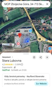 In der Slowakei sind wir dann erstmal zu „Kaufland“ (Stará Ľubovňa) – im Ausland bevorzugen wir ja eher lokale Geschäfte, aber hier gibt’s nur Lidl, Aldi, Hornbach, DM, Rossmann und eben Kaufland. Dort „frühstückten“ wir leckere Pommes und besorgten dann noch ein wenig Bier und Kleinigkeiten, die noch fehlten.